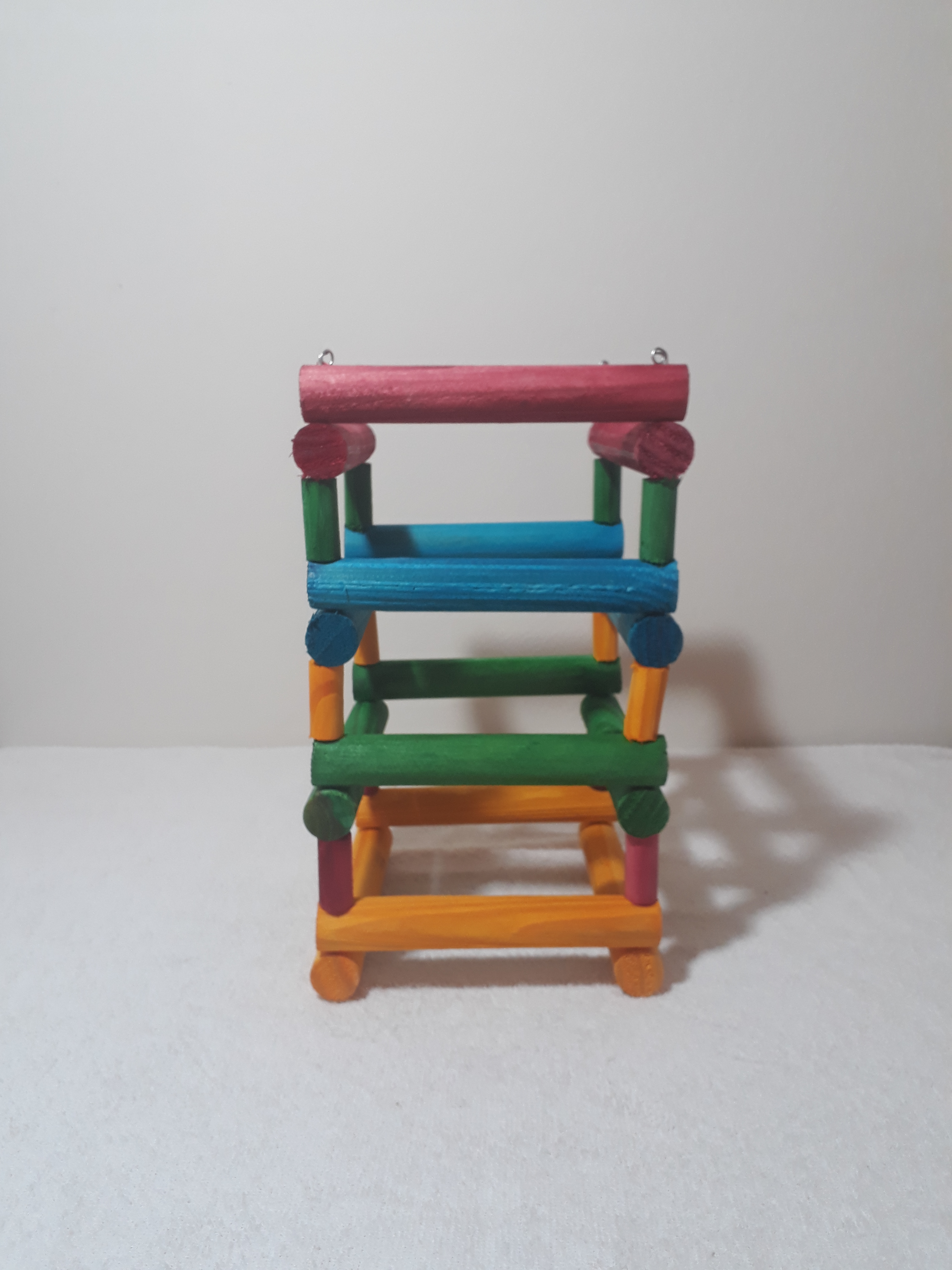 Escalador feito em madeira de pinus e pintado com corante alimentício, ideal para seu pet se divertir, exercitar, roer e desgastar os dentes. Medidas: 30 cm de altura, 17 cm de comprimento e 17 cm de largura.
