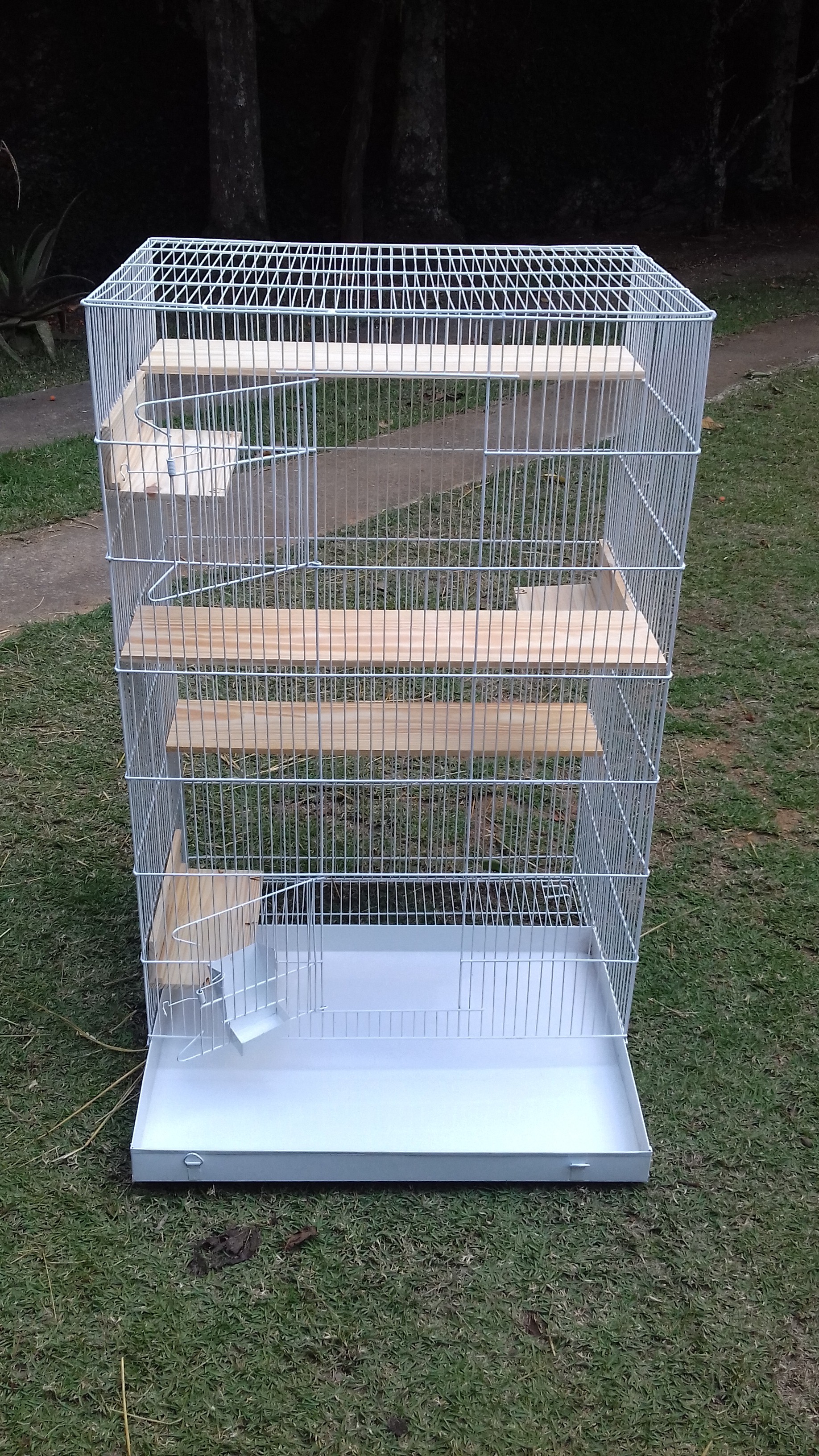 Características - gaiola galvanizada, 3 níveis com escadas, gaveta para facitar limpeza, acompanha alfafeiro / comedouro. 2 Portas frontais. OBS. Em entregas via PAC e SEDEX ela vai SEMI-MONTADA devido ao correio não aceitar suas medidas cúbicas montada.